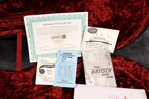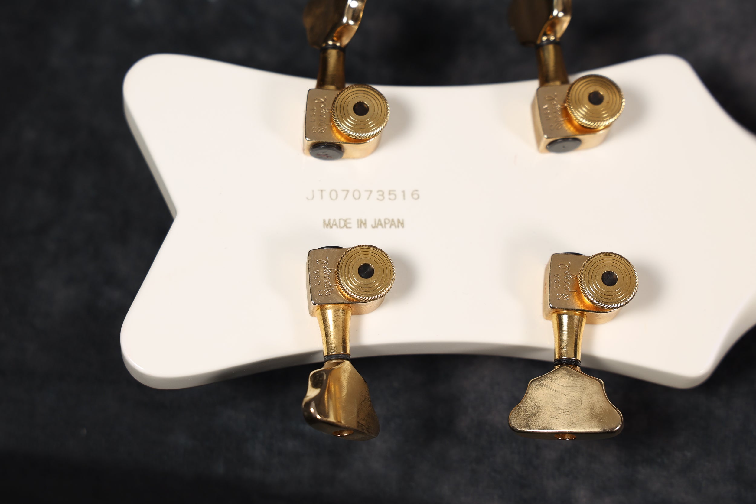The hardware is all original, and all metal parts are gold-plated. It includes Sperzel locking tuners, G-cutout tailpiece, Space Control Bridge on ebony base, TV Jones Thunder ‘Tron pickups with master volume, individual volume controls, pickup selector, tone switch, and standby switch.