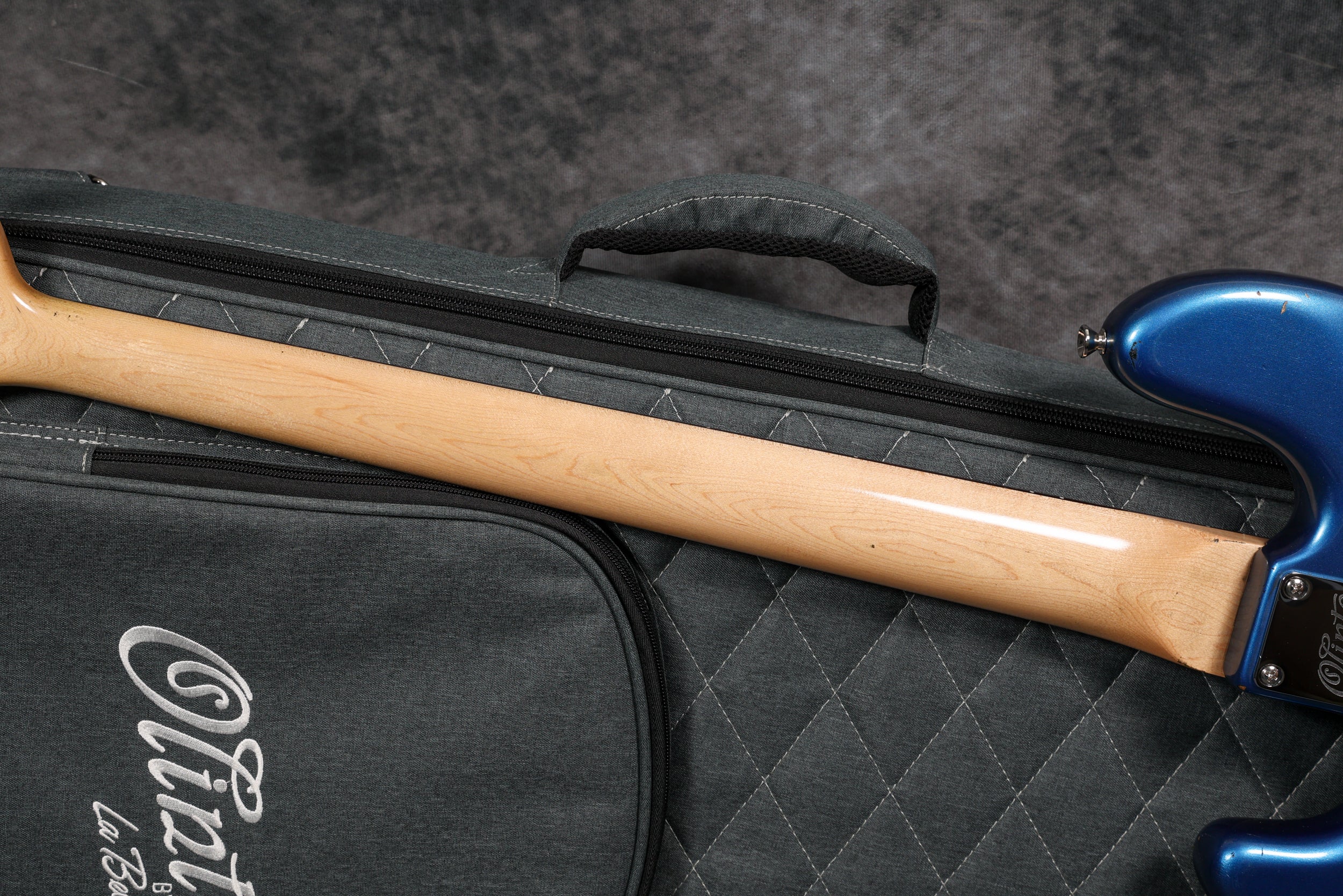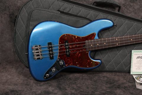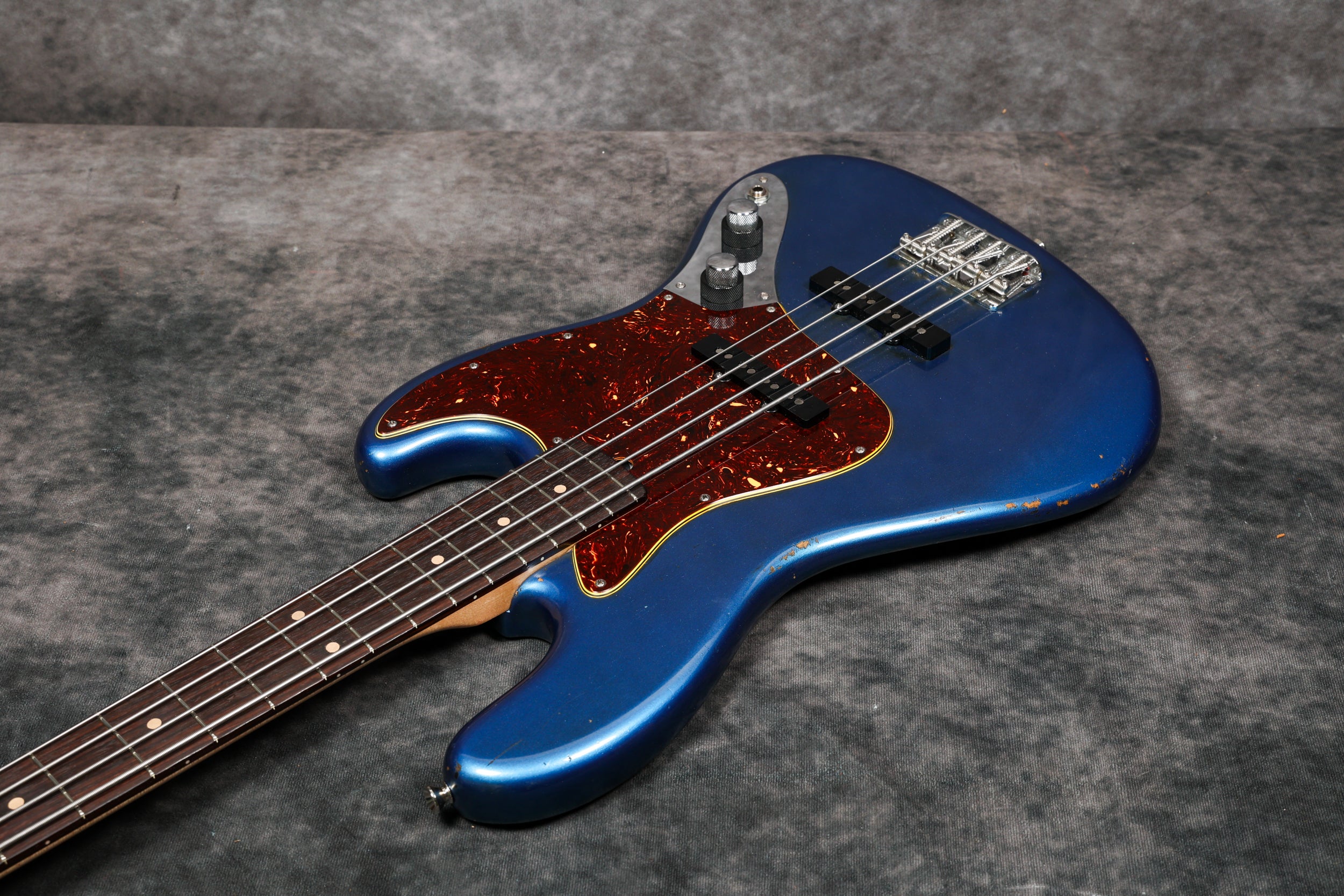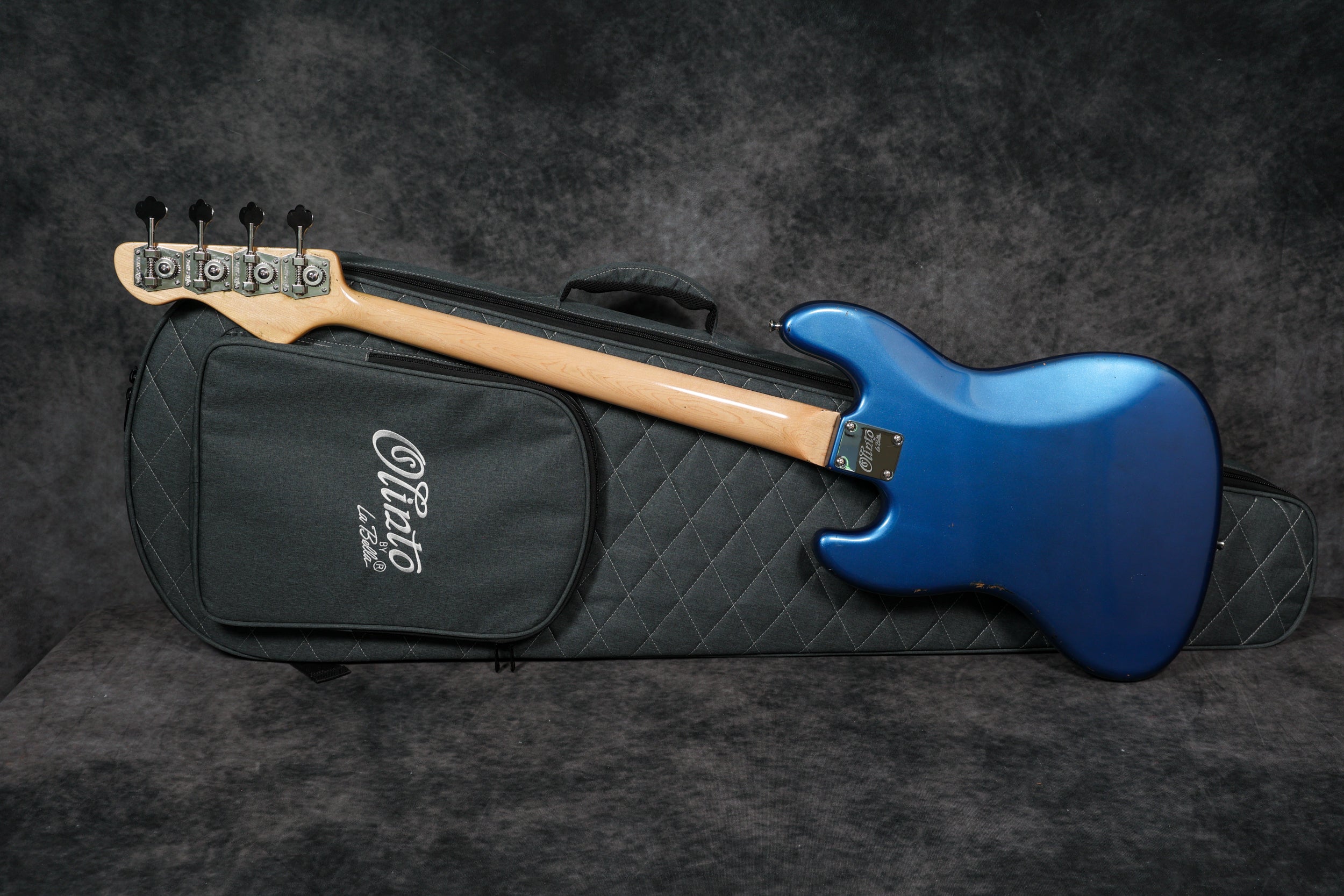 Brand new Olinto 4-String J "Stack Knob" in Lake Placid Blue Relic. It has an alder body, with a maple neck and an Indian rosewood fingerboard. The Lake Placid Blue finish looks amazing, especially when paired with the dark tortoiseshell guard. This bass sounds incredible and is good fun to play. It was made specially for the NAMM show 2026.