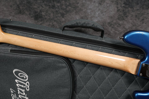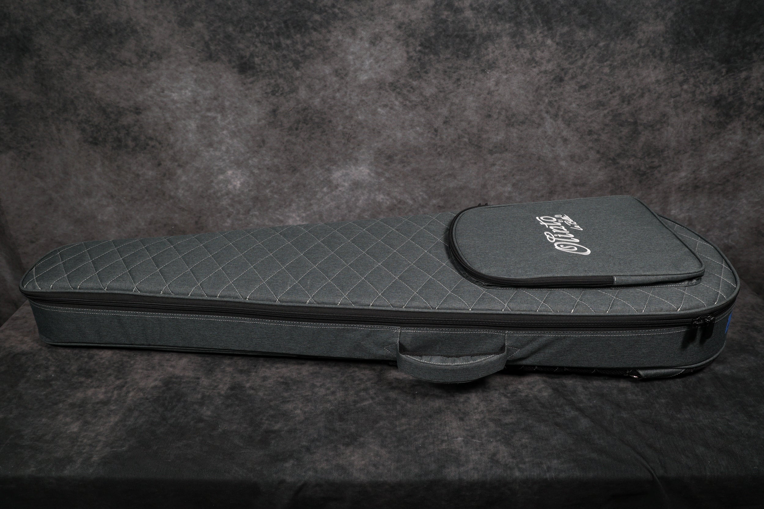 This bass is shipped in an Olinto gig bag and comes with a certificate of authenticity, a La Bella sticker, a pin badge and an Allen wrench, as well as some Andy Baxter Bass merch. It's strung with La Bella SP-47107 Super Polished strings.